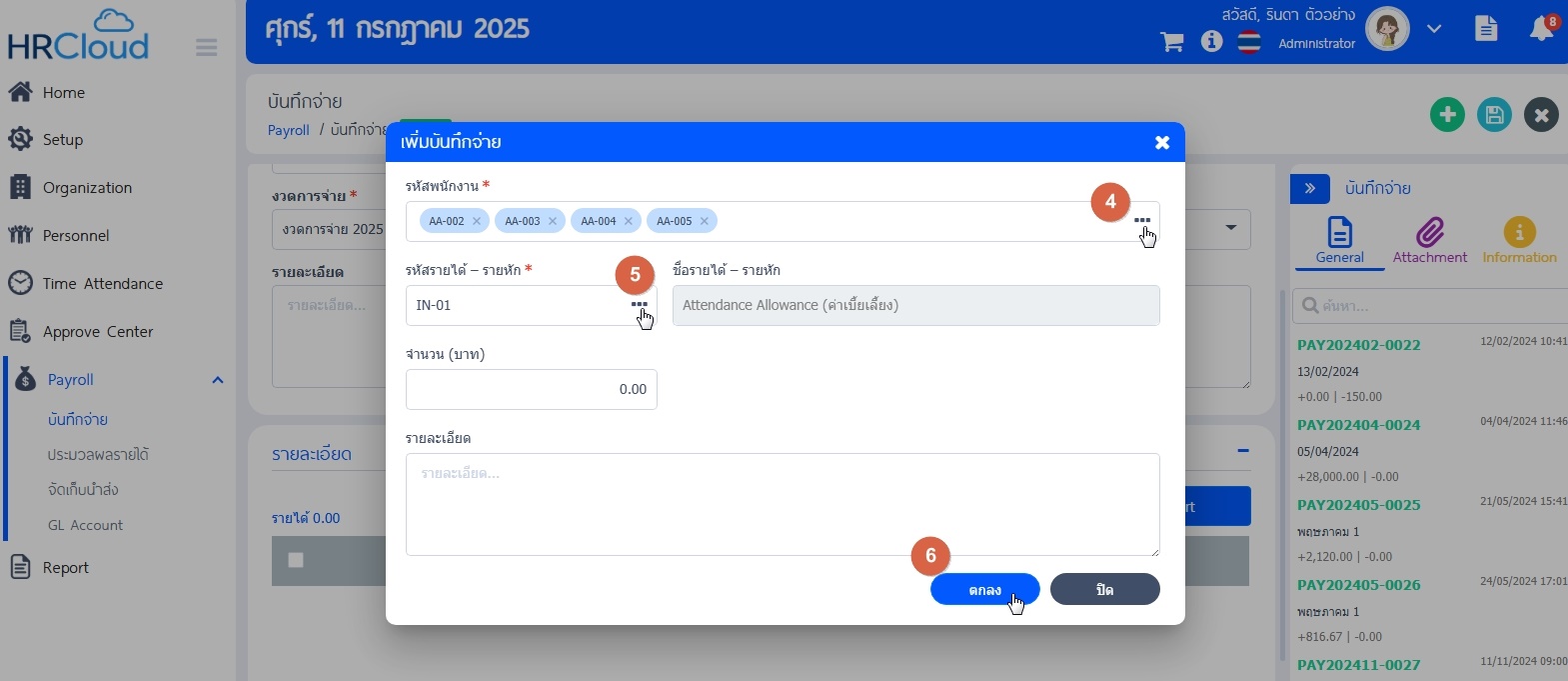ขั้นตอนการบันทึกจ่าย สำหรับรายได้และรายหักที่ไม่ประจำของพนักงาน