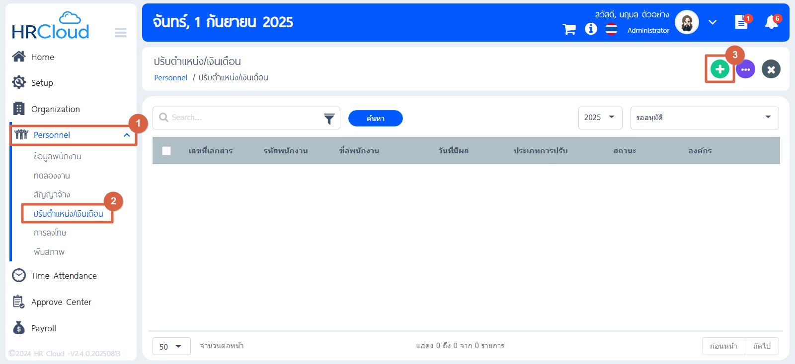 ขั้นตอนที่ 2 เปิดเมนู ปรับตำแหน่ง/เงินเดือน