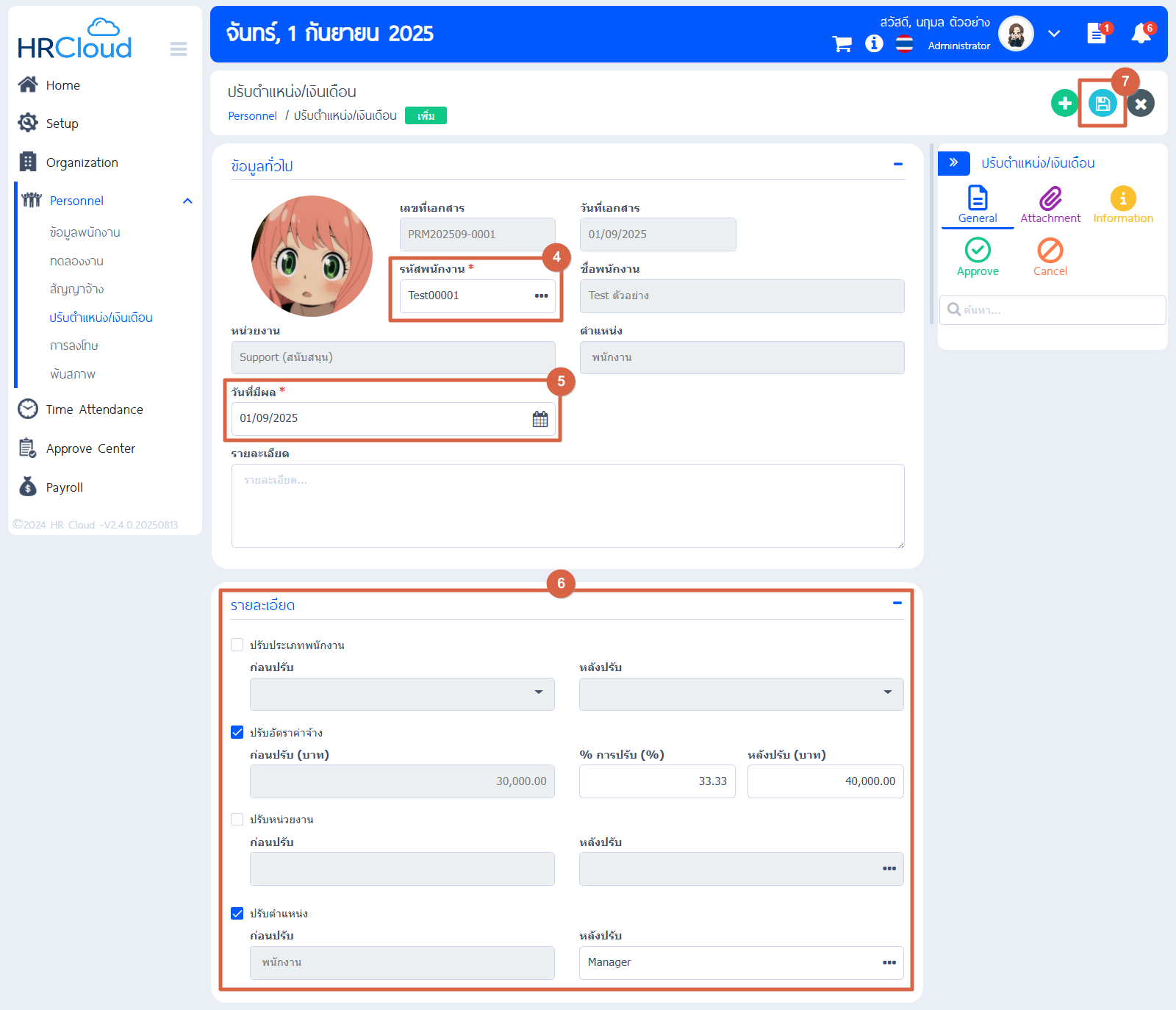 กรณีที่บริษัทมีการปรับในเรื่องของ ตำแหน่ง เงินเดือน ประเภทพนักงาน และหน่วยงานที่พนักงานทำงาน ในระบบสามารถใช้เอกสารในการปรับข้อมูลดังกล่าวได้ การใช้เอกสารในการปรับ จะช่วยในเรื่องของการเก็บข้อมูลก่อนปรับไว้ในระบบ ซึ่งมีขั้นตอนในการใช้งานเอกสารมีดังนี้