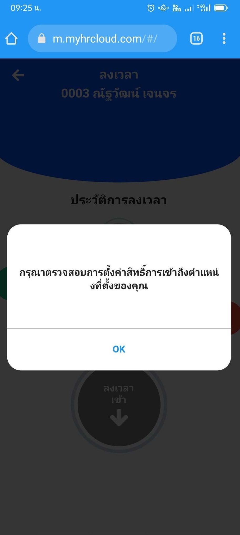 ไม่สามารถกดลงเวลาได้เนื่องจากระบบแจ้ง ”กรุณาตรวจสอบการตั้งค่าสิทธิ์การเข้าถึงตำแหน่งที่ตั้ง” ทำอย่างไร