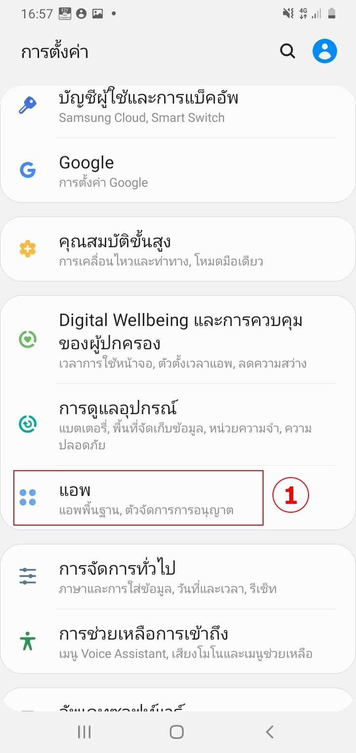 วิธีการแก้ไขกรณีของ Application HR Cloud บน Androidขั้นที่1 ตั้งค่า > แอพ