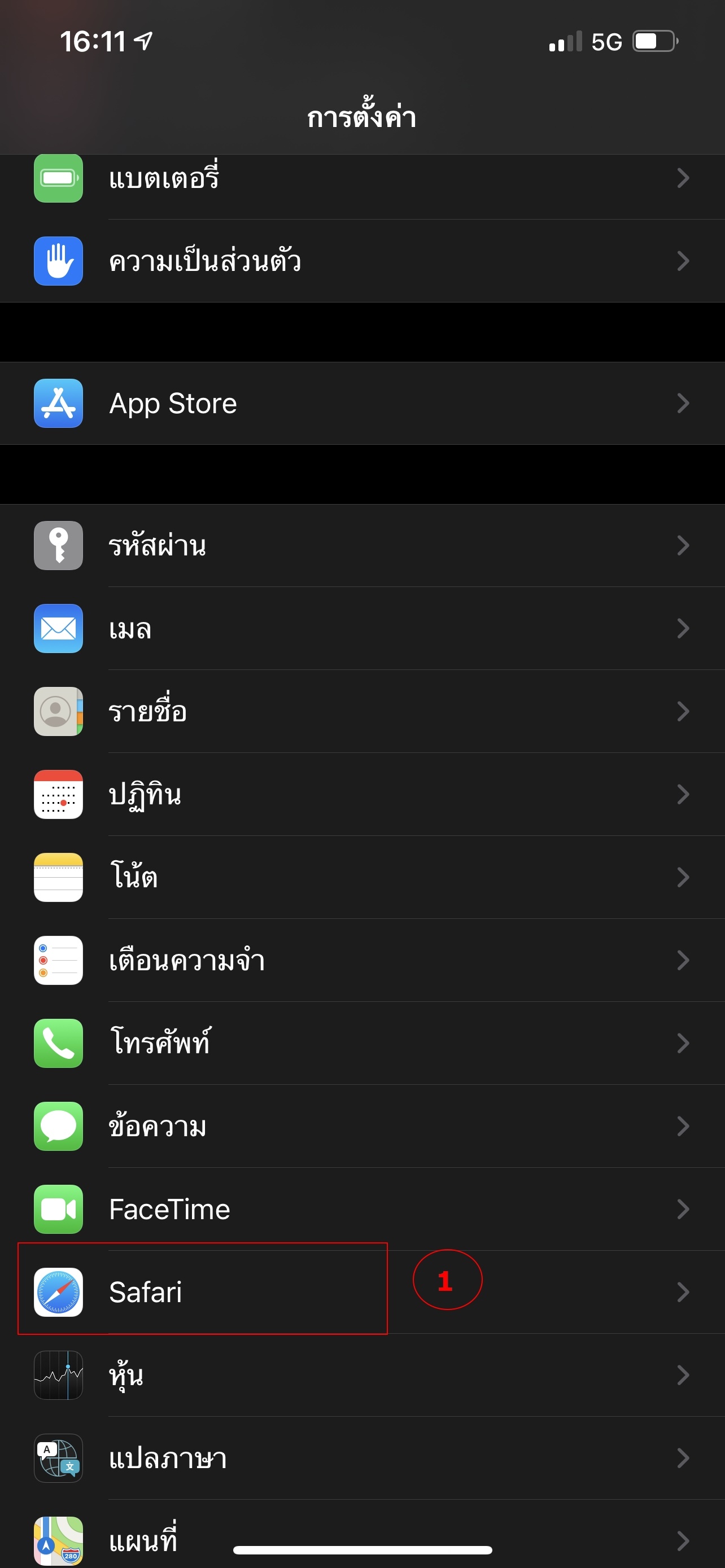 ขั้นที่1 ให้เราเข้าไปที่ ตั้งค่า > Safari